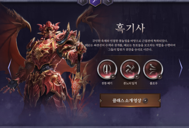 클래스는 흑기사, 흑마법사, 요정 이렇게 3가지입니다.