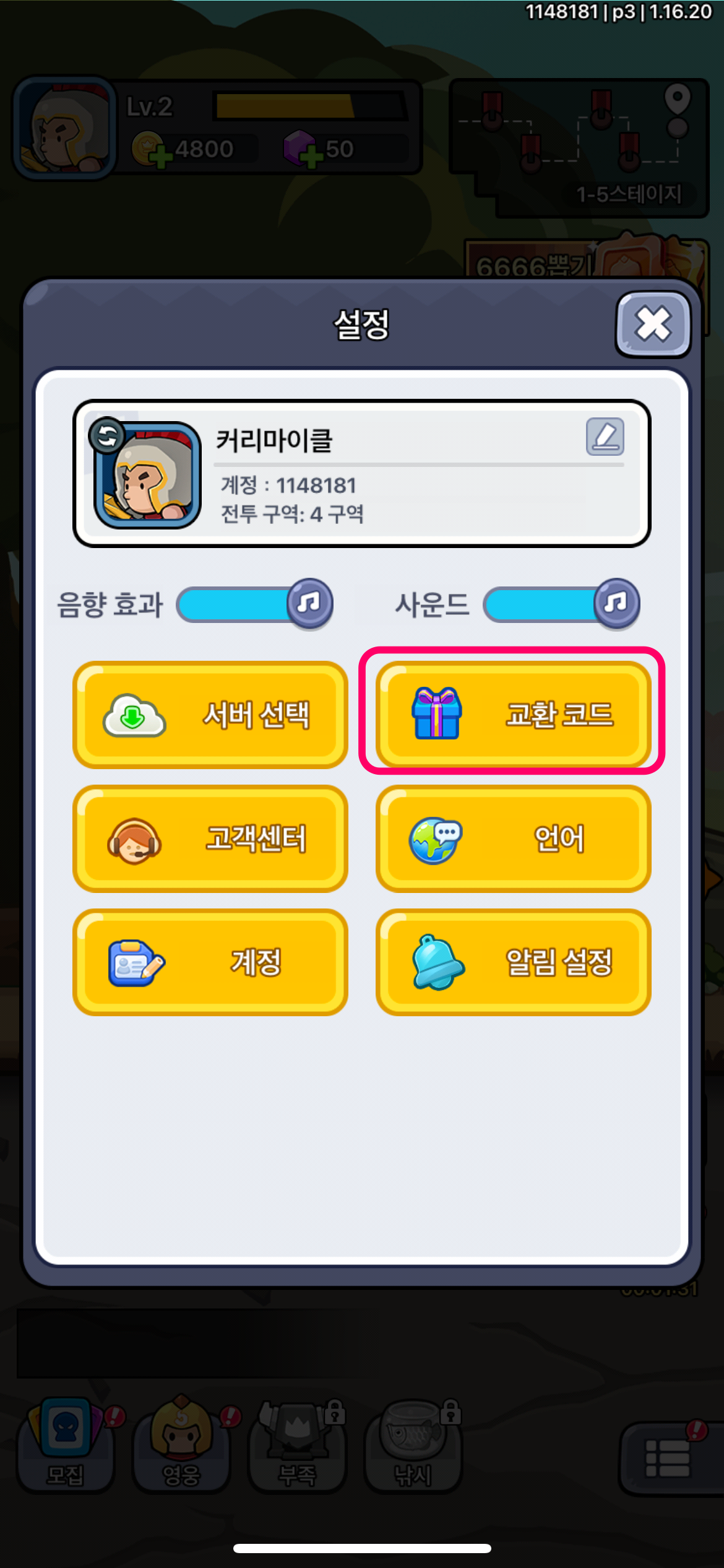 미니히어로즈 Reborn 쿠폰 입력 방법