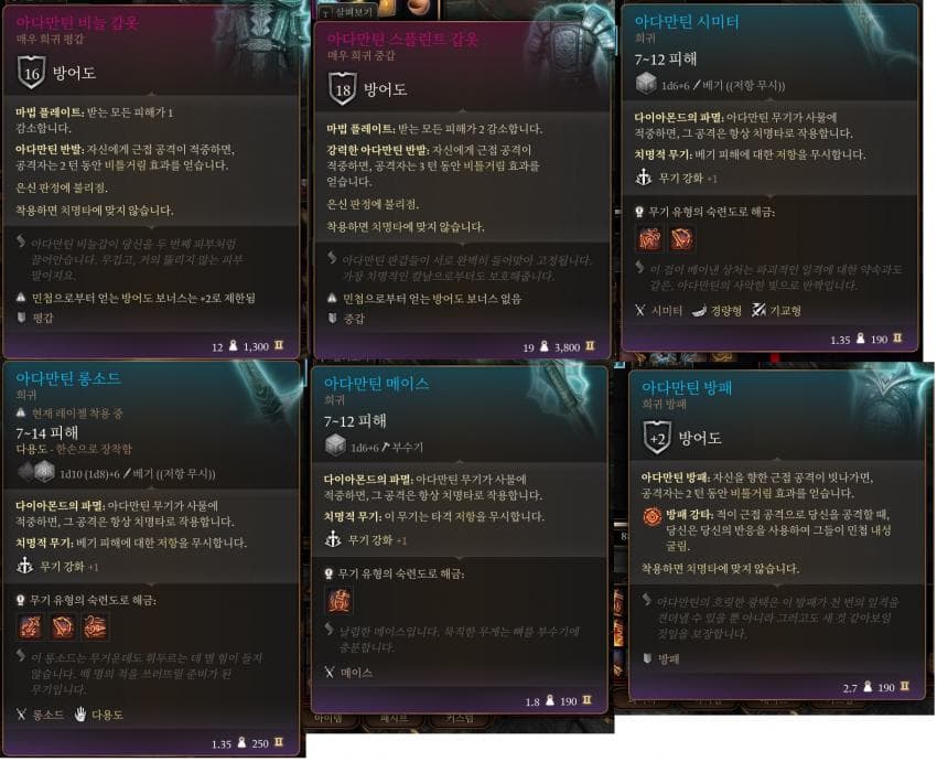 발더스 게이트 3 [Baldurs Gate 3] 아다만틴 대장간 아이템 옵션