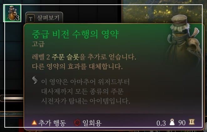 그런데.. 주문 슬롯 개수 증가는 지속형 효과라 다른 영약이랑 마시면 풀리는데..