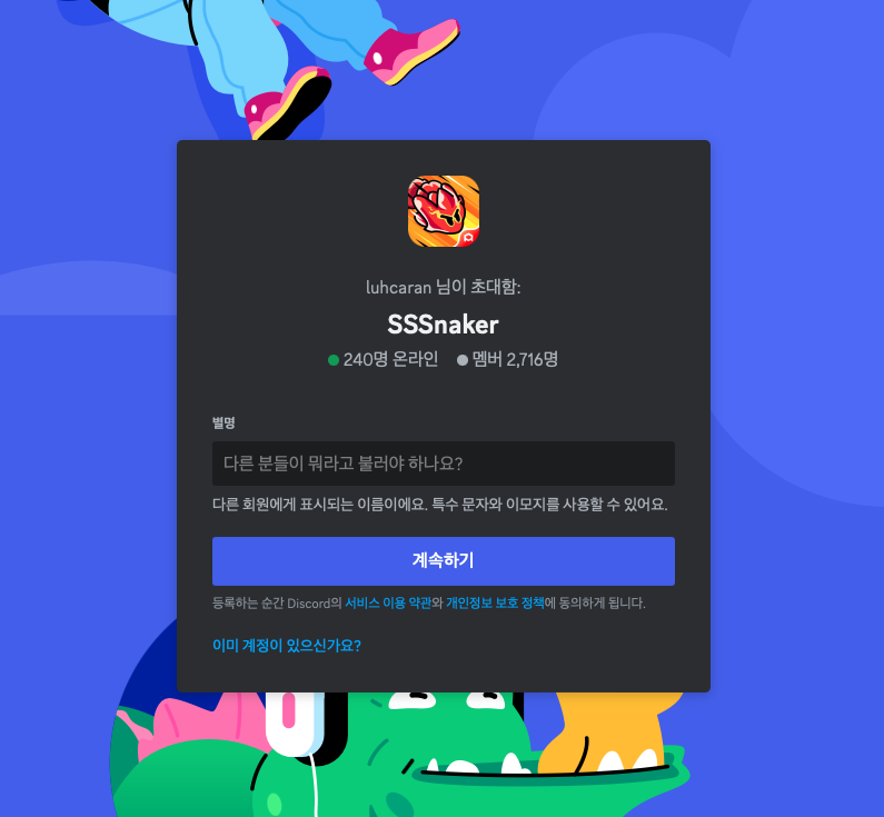 1. 먼저 배배배뱀 디스코드 사이트로 이동합니다.