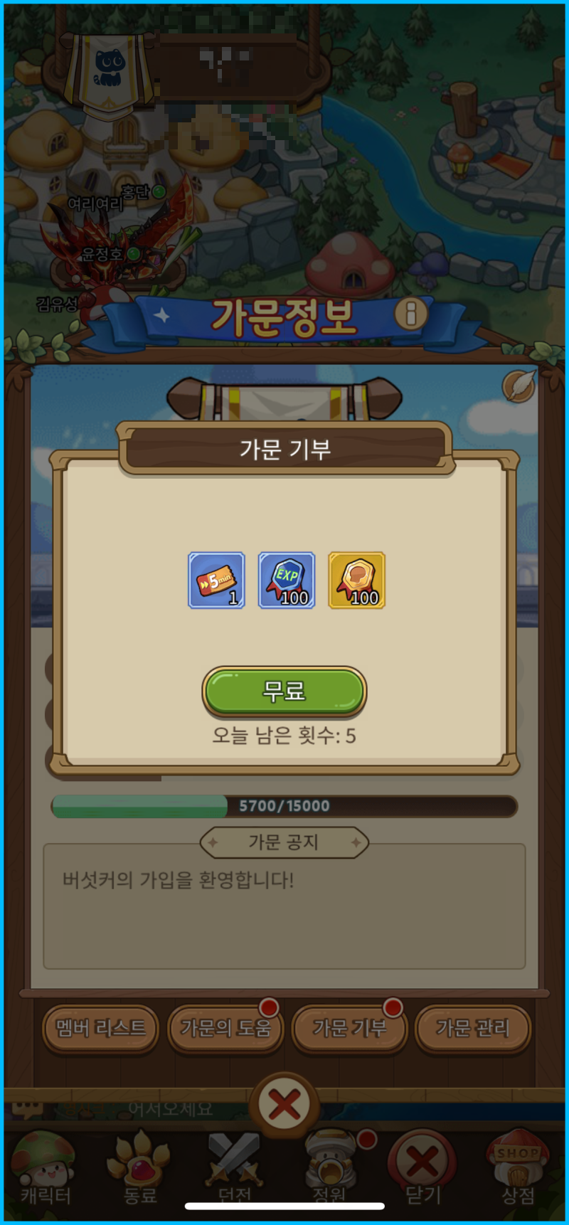 가문은 무과금 유저라면