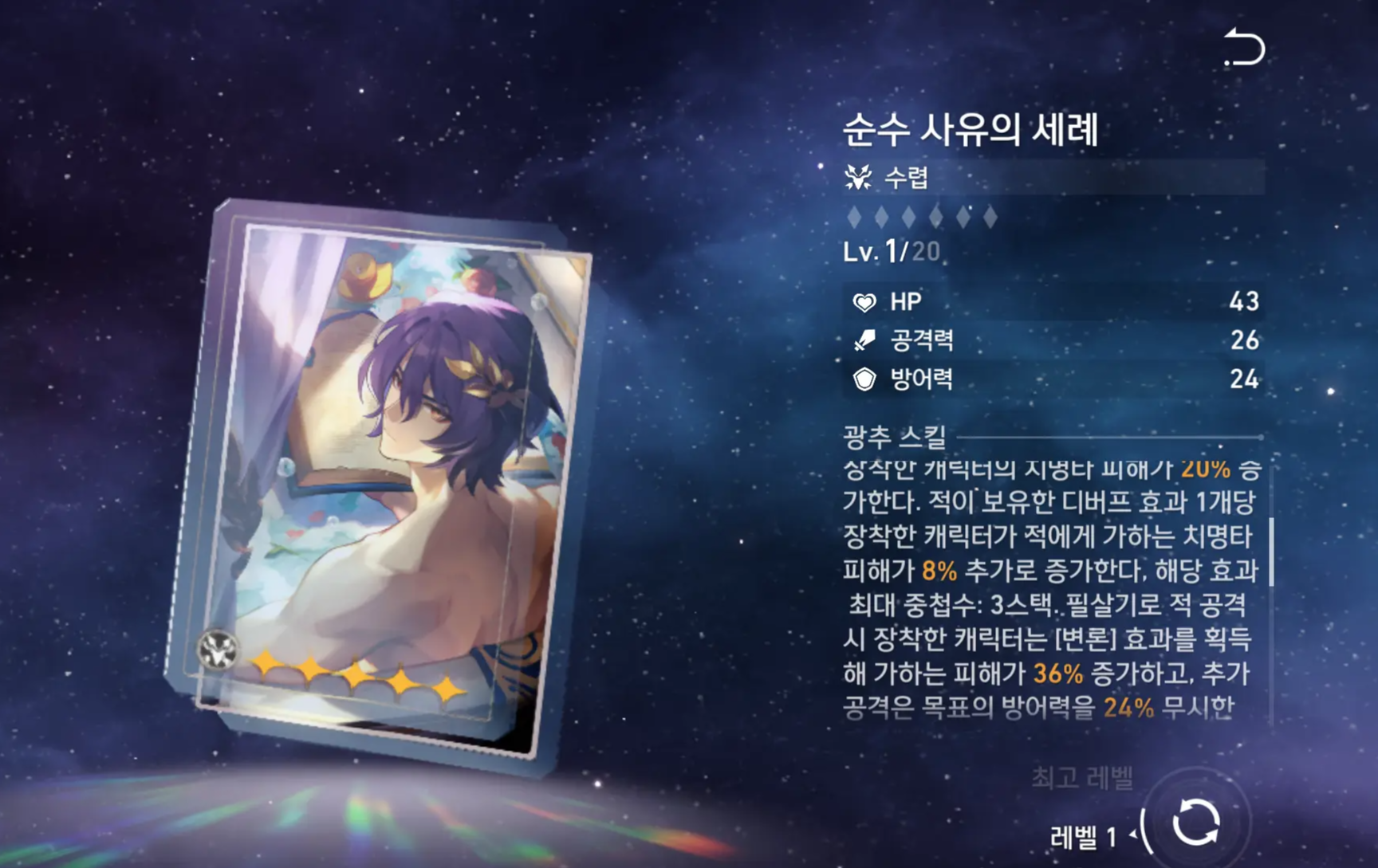 후반 픽업 5성 캐릭터 레이시오입니다.