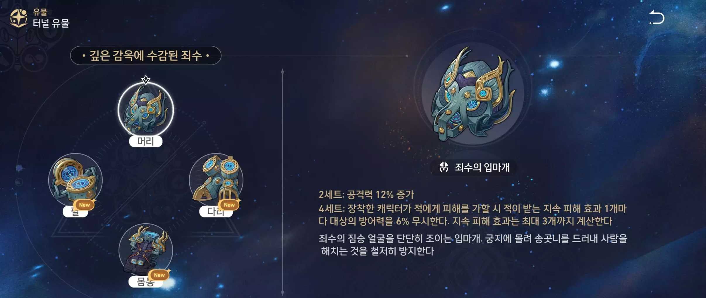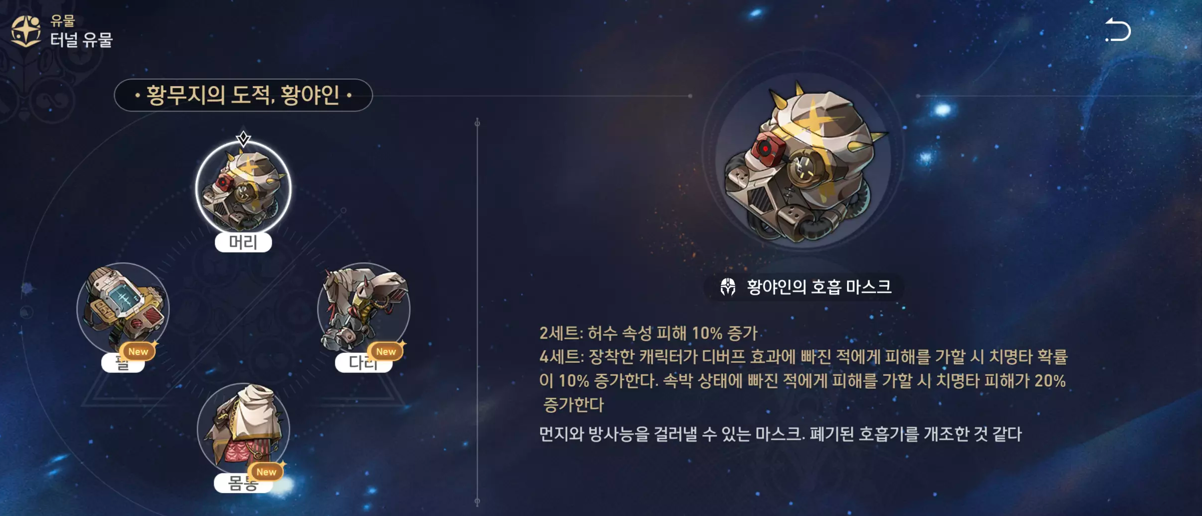 레이시오 유물 및 장신구 주 옵션과 부 옵션