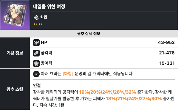 | 주 옵션 | 공격력% | 공격력% | 공격력% | 에너지 충전 효율 |