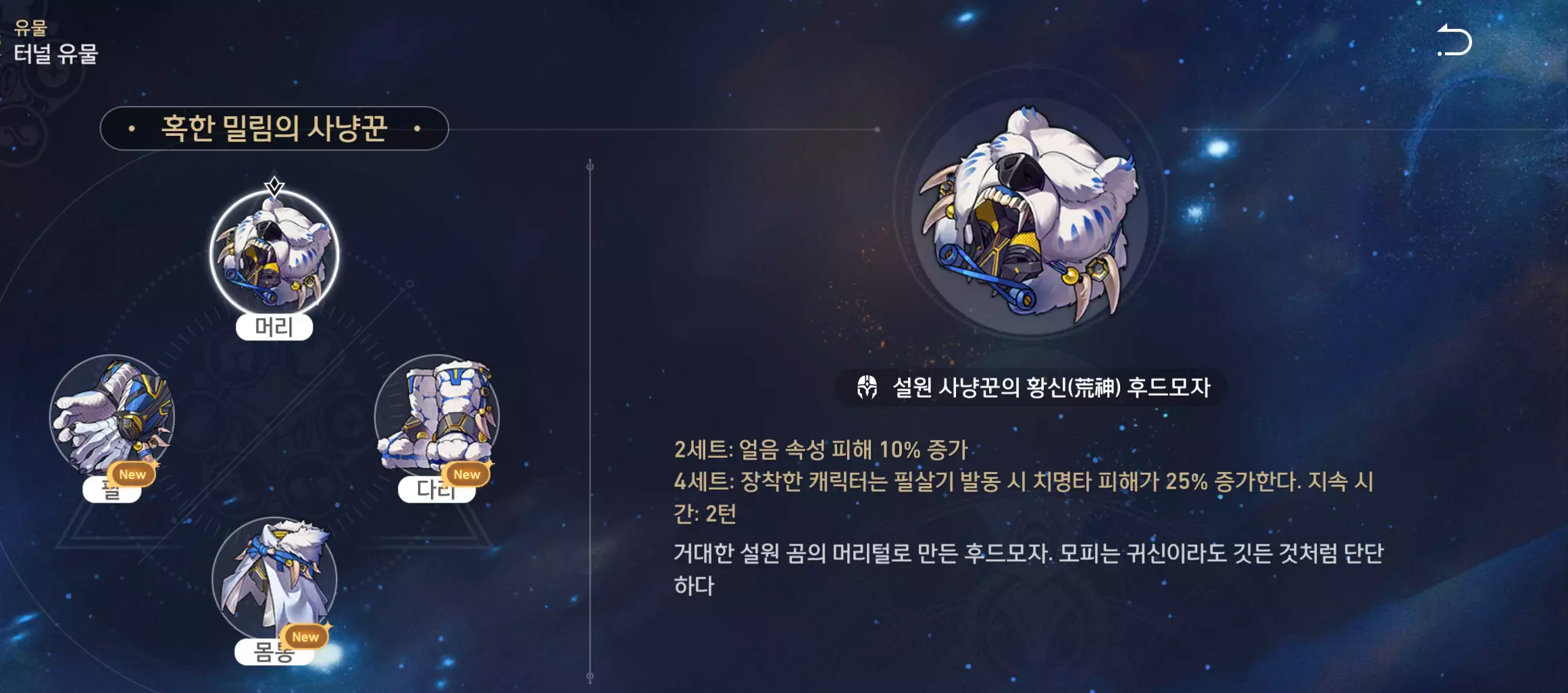 | 주 옵션 추천 | 치명타 확률 | 공격력% | 얼음 피해 증가 | 공격력% |