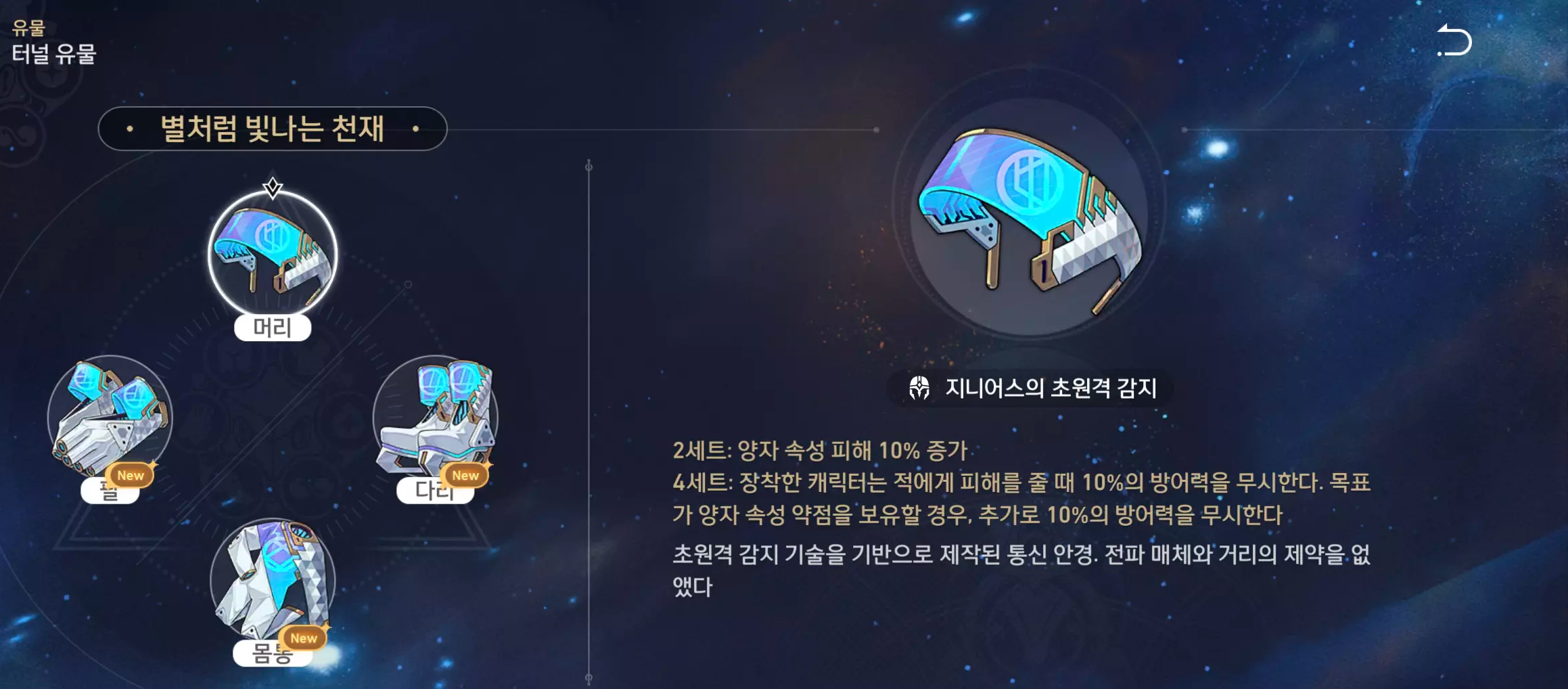 양자 세트나 공격력 위주 유물을 끼면 됩니다.