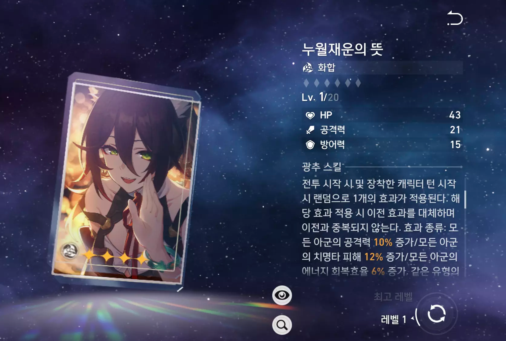5성은 명함 전광, 4성은 풀돌 기준입니다.