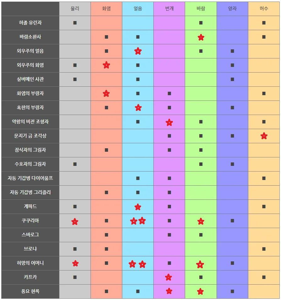 몬스터 약점표입니다.