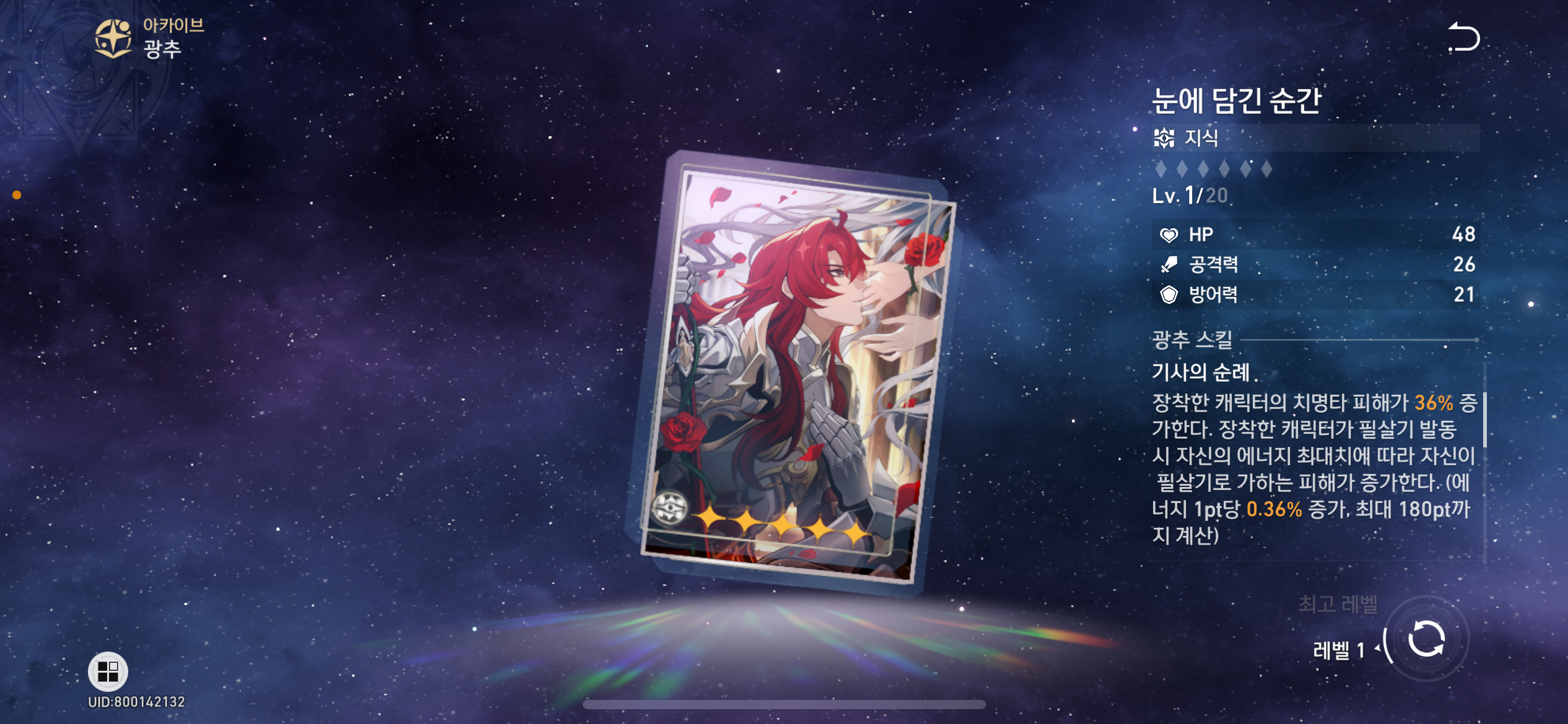 | 부 옵션 | 1순위:치명타 확률 2순위:속도or공% 3순위:속도or공% 4순위:공격력 |