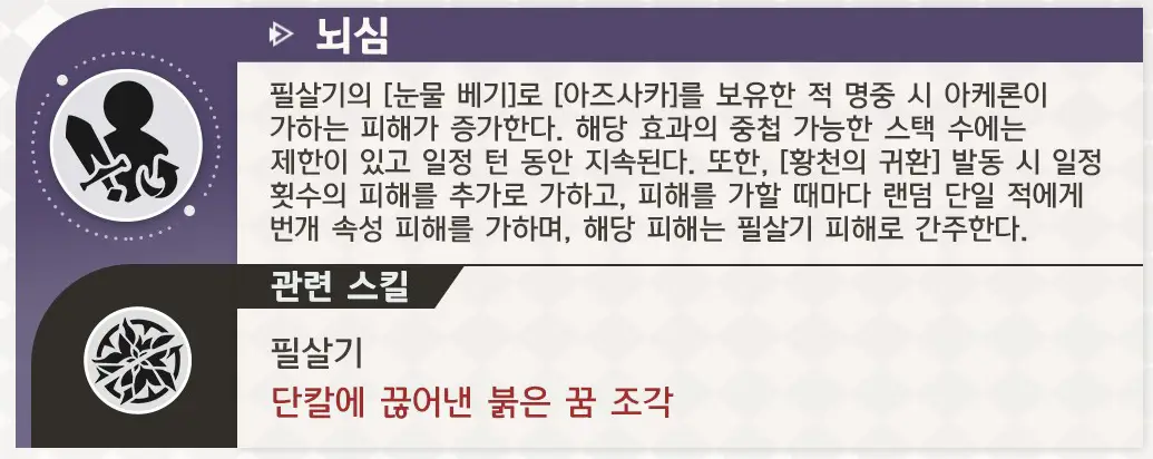 필살기 스택과 대미지 뻥튀기가 동시에 가능한 행적.