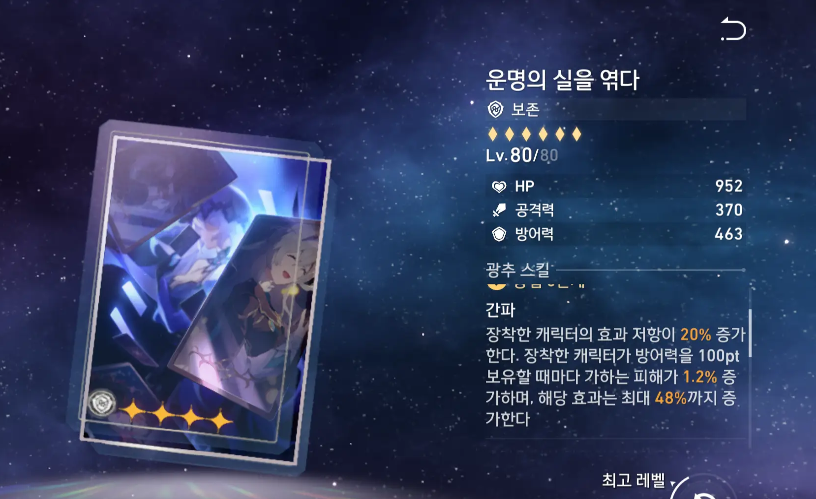 1순위:방어력% 2순위:치명타 확률 3순위:치명타 피해 4순위:효과 저항 |