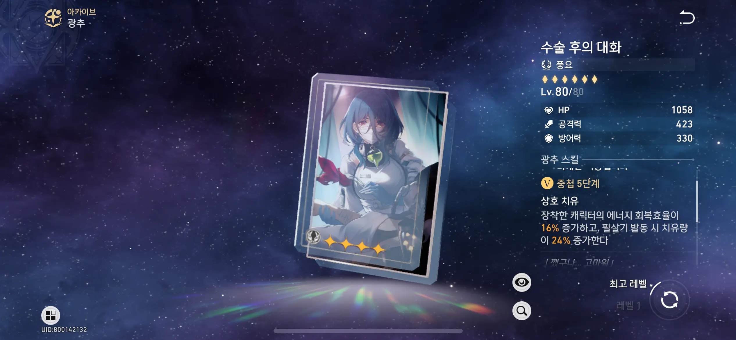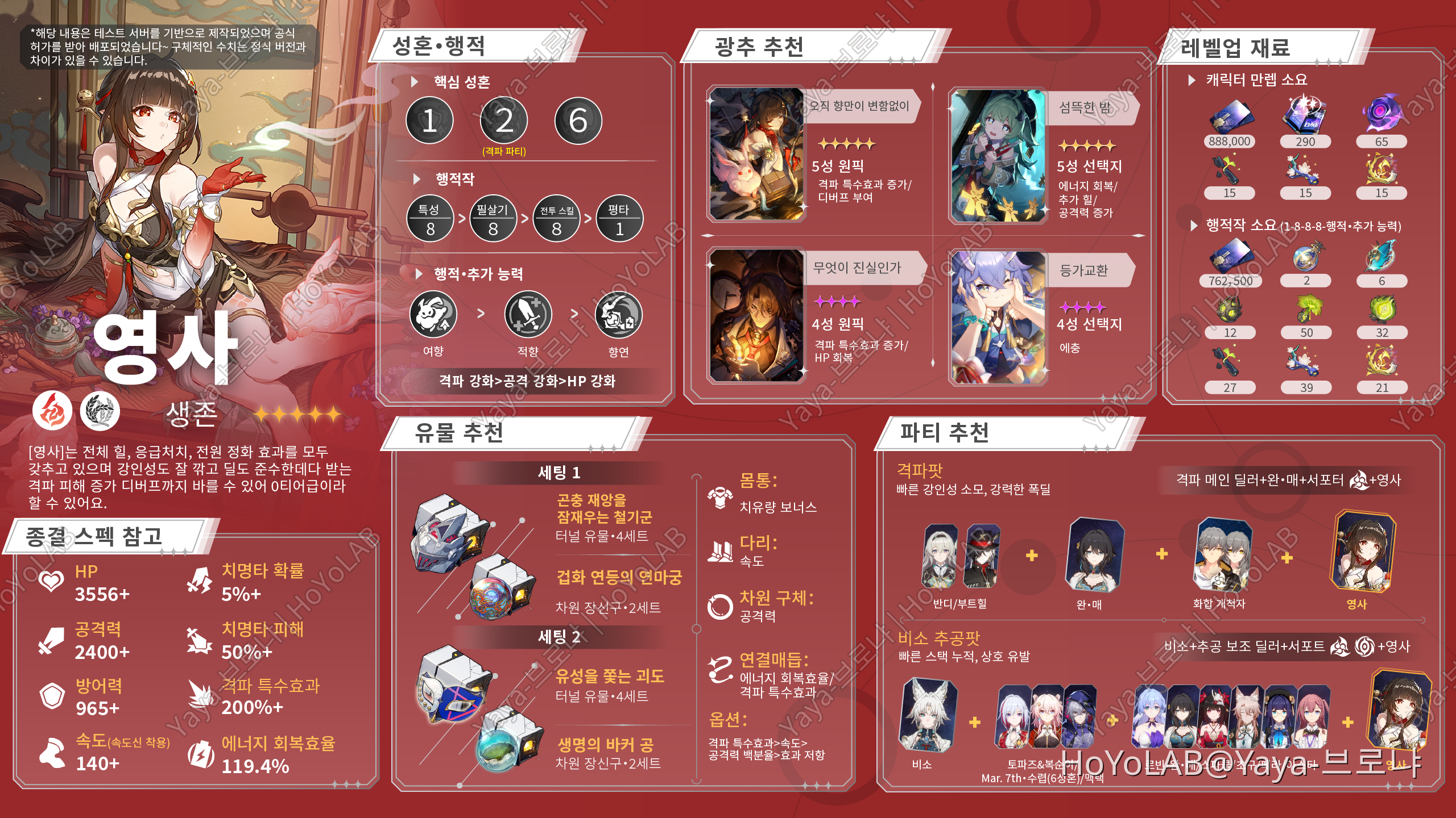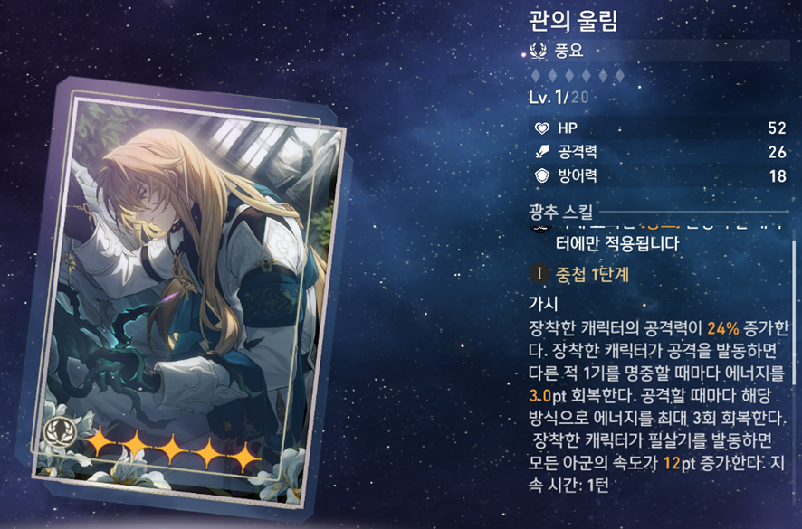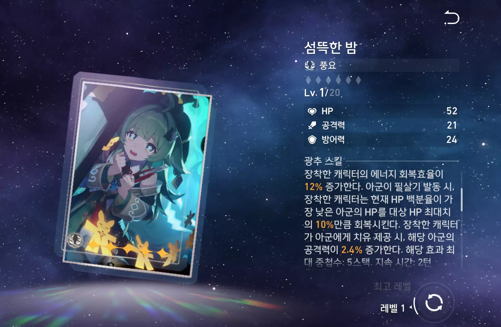| 주 옵션 추천 | 치유량 보너스 | 속도 | 공격력% | 에너지 회복 효율 격파 특수효과 |