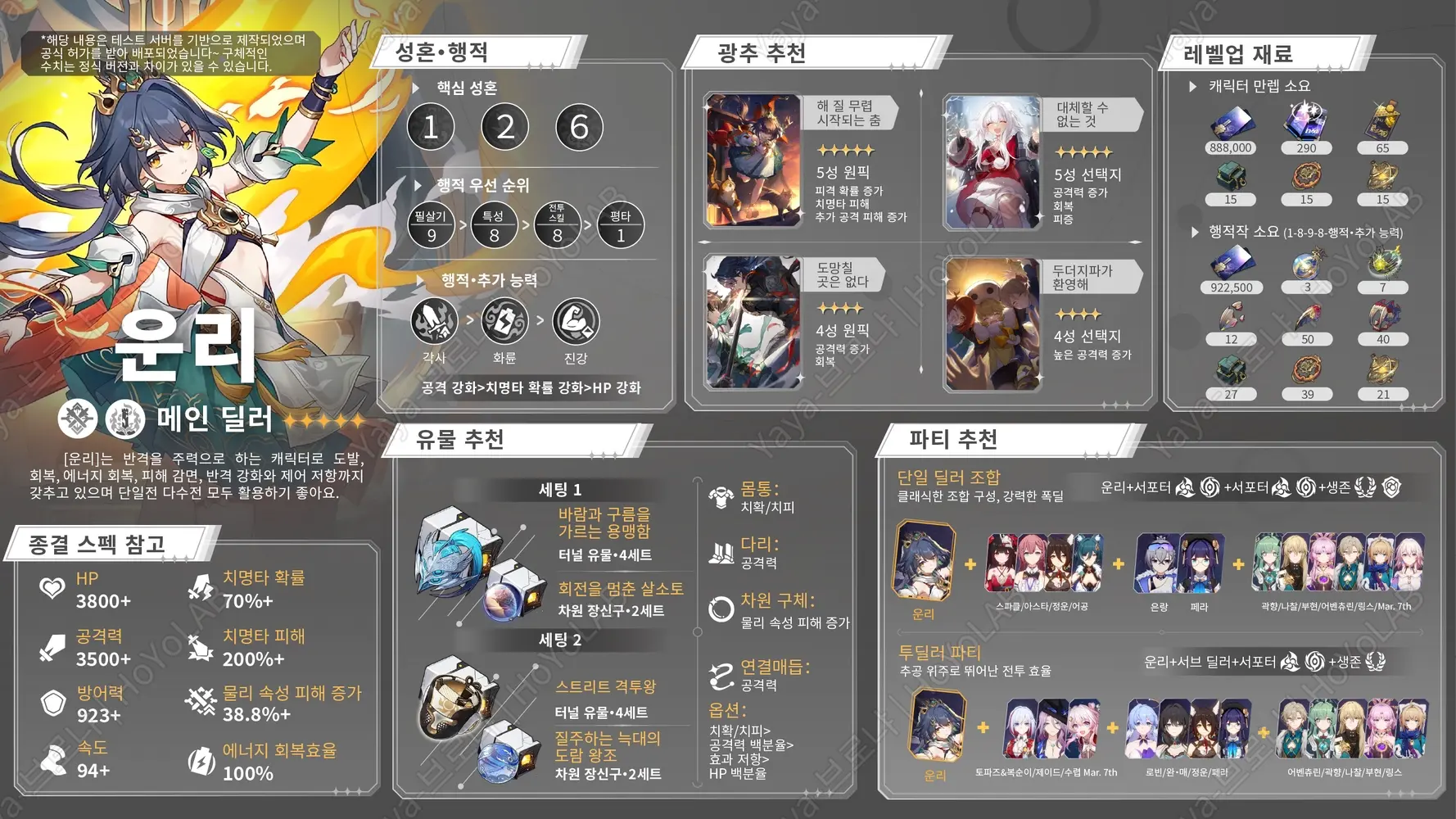 붕괴 스타레일 운리 [성흔] 돌파 추천