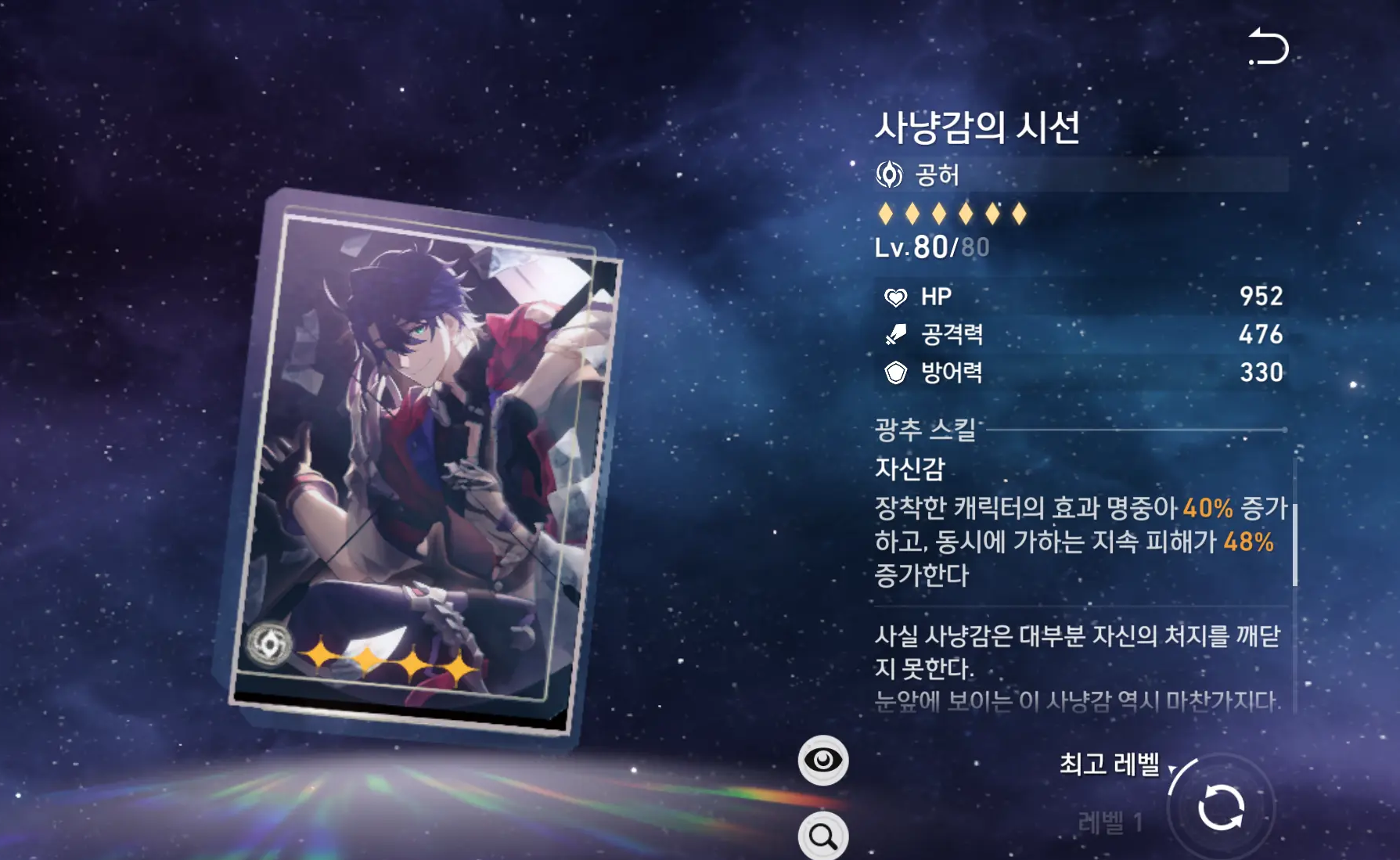 자, 초구는 화염 속성 5성 공허 캐릭터.