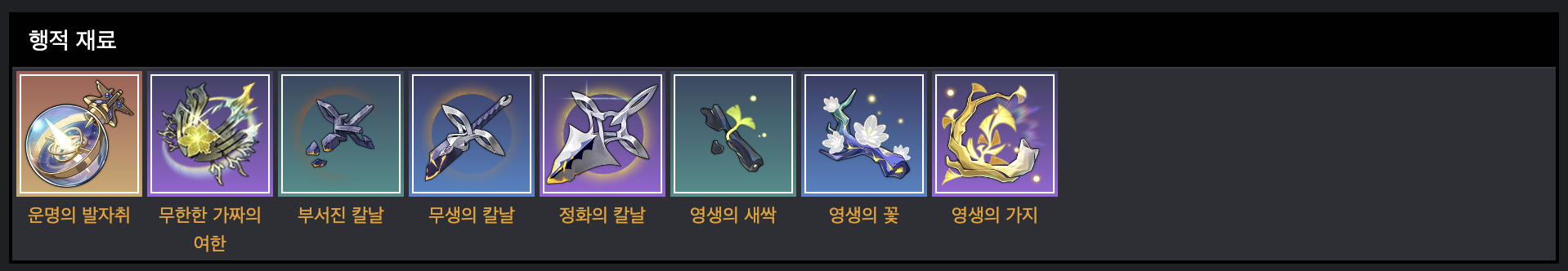 경류 게임 내 행적과 성장 재료