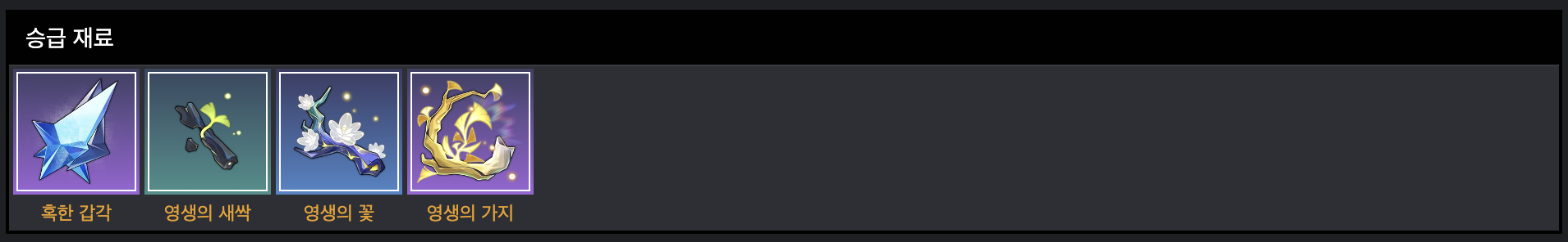 [혹한 갑각]이 새로 나온 재료입니다.