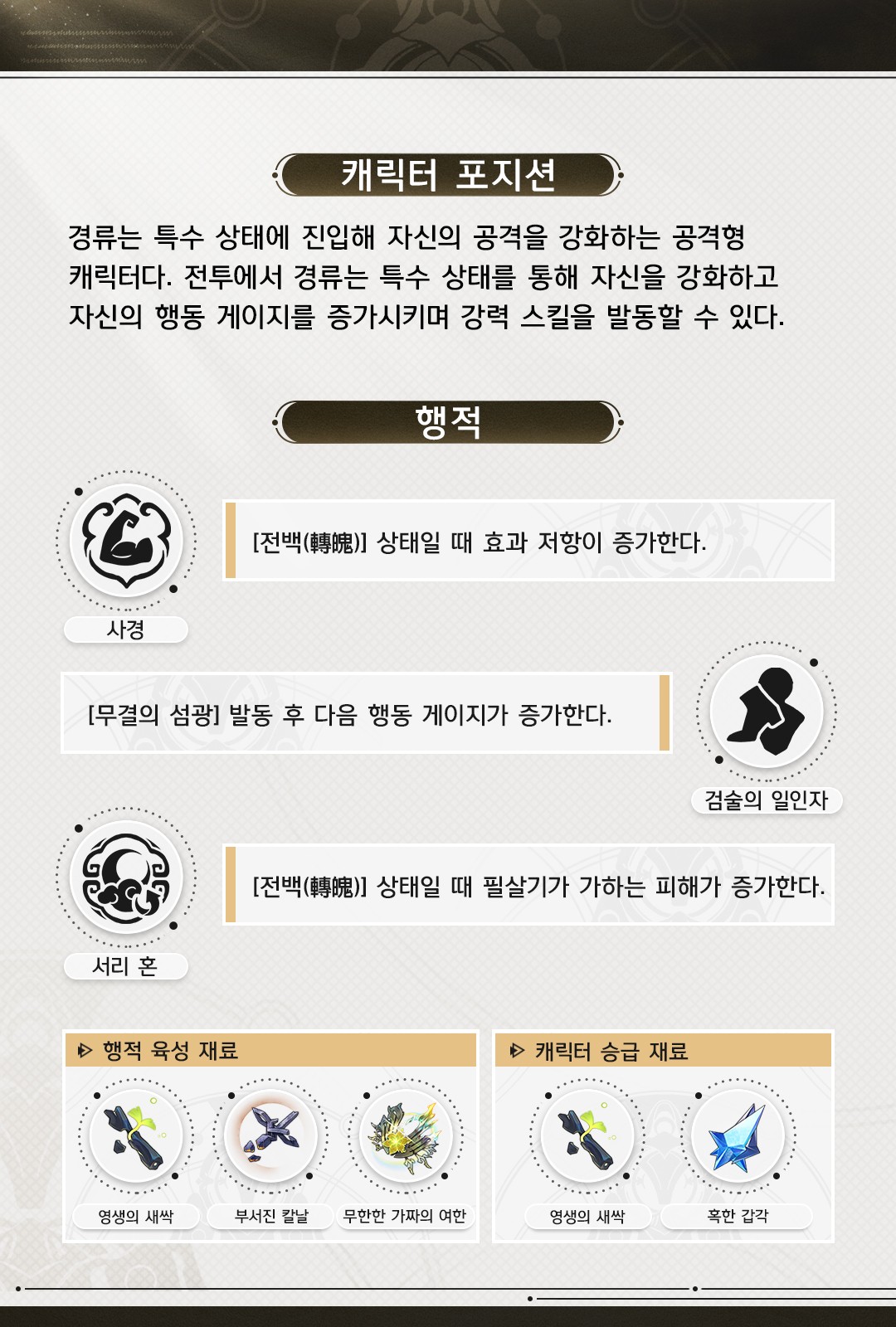 경류 성흔 및 전용 광추 정보