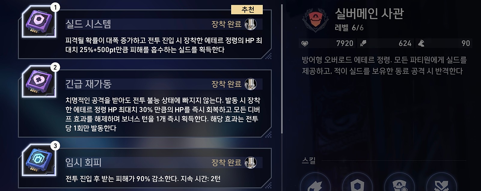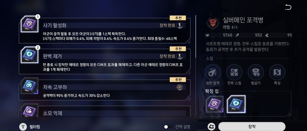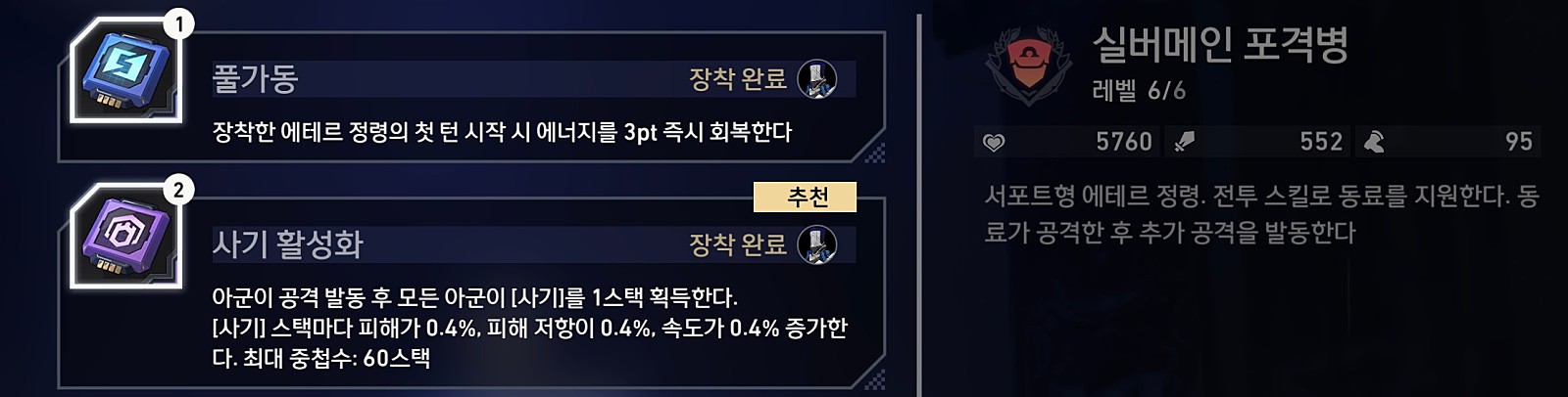 포격병 전투스킬, 필살기 -> 실버메인한테 걸어주고 반격딜 + 포격병 확산딜
