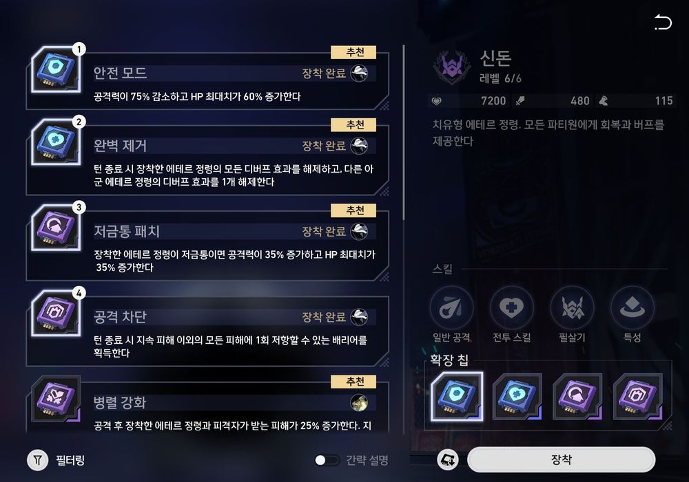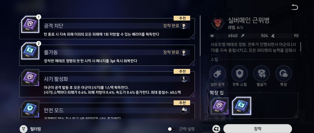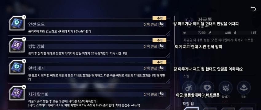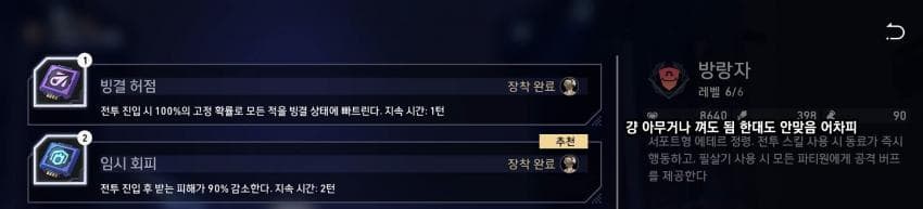 (공격차단칩 허졸한테 주면 혼자 남았을 때 멱살 잡고 캐리 하는 경우 많음)