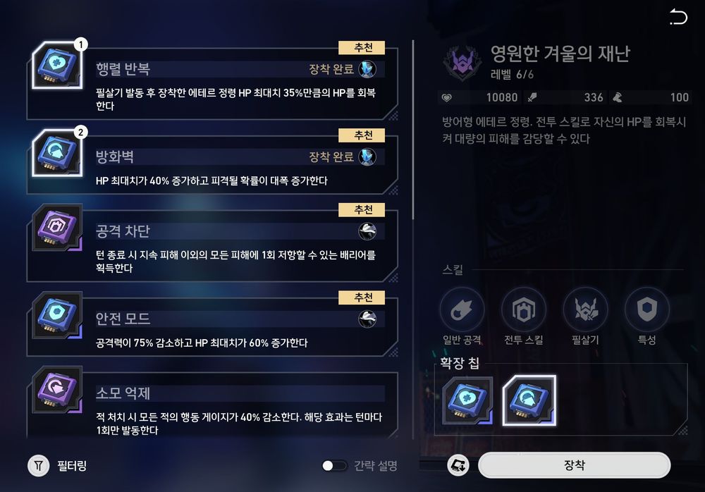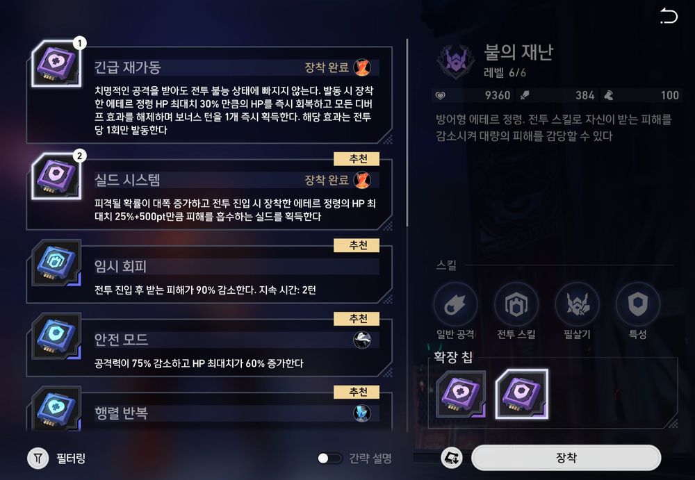 착용하는 아이템인 칩 공략을