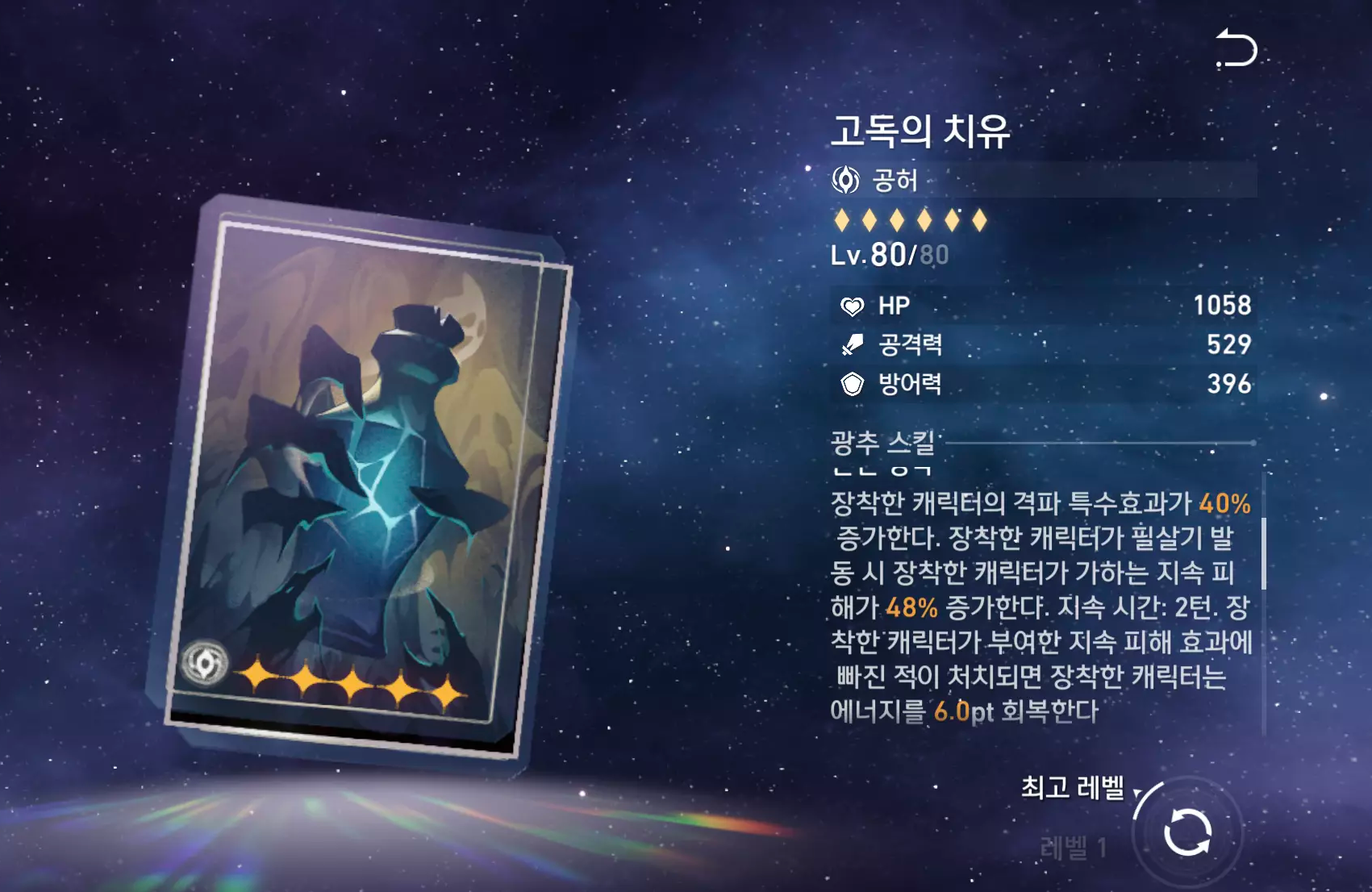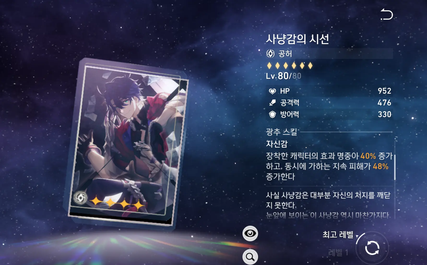 | 부 옵션 추천 | 1순위: 공격력% 2순위: 효과명중 3순위: 속도 4순위: 격파특수효과 |