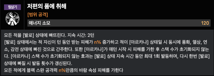 [아르카나]라는 지속 피해에만 적용되지 않고