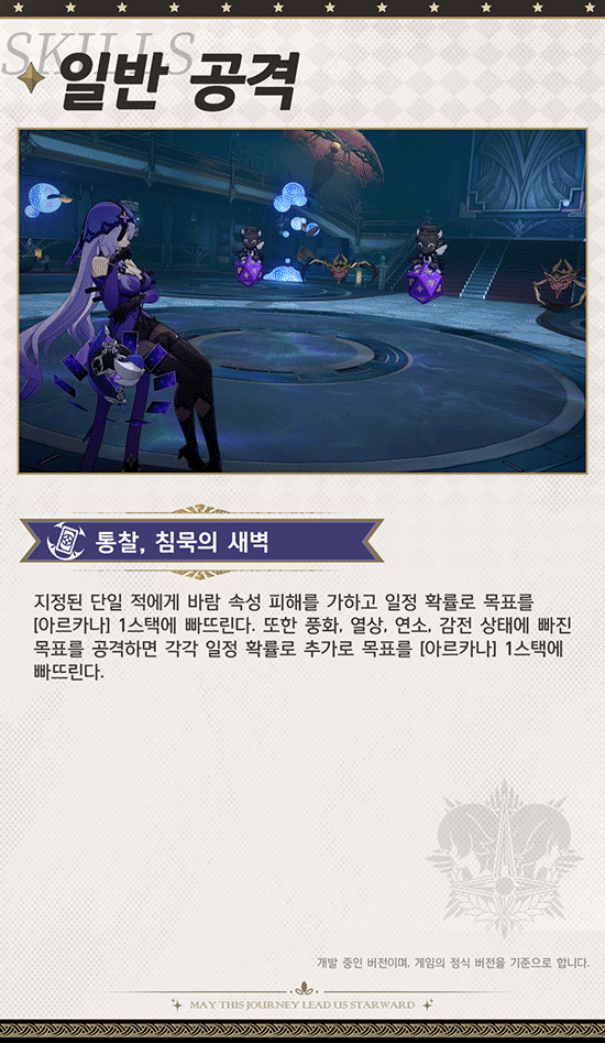 바람 속성 피해를 가하고 [아르카나] 1 스택에 빠뜨립니다.
