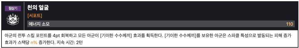 이 때 [가면]의 버프는 4턴 지속입니다.
