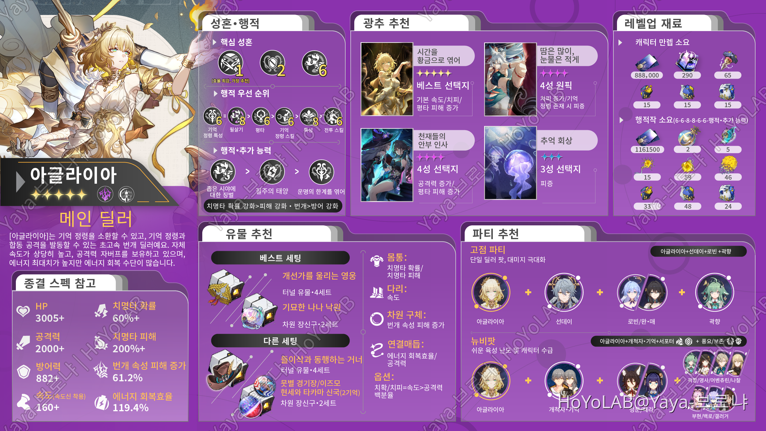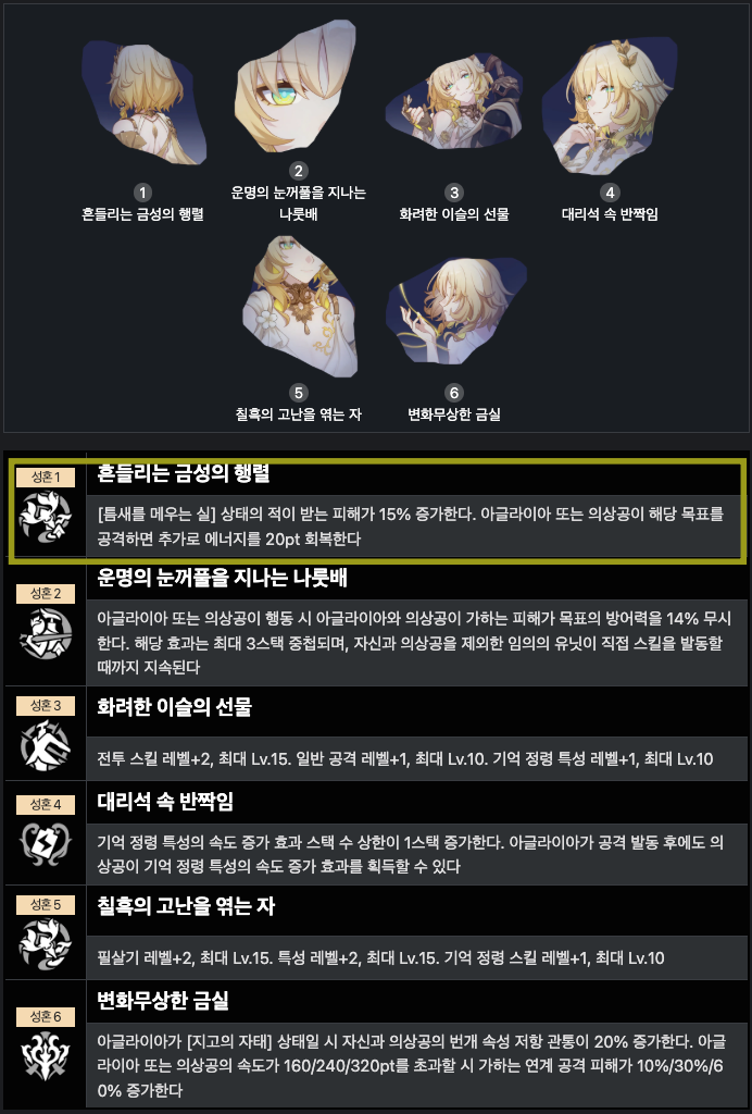붕괴 스타레일 아글라이아 [성흔] 돌파 추천