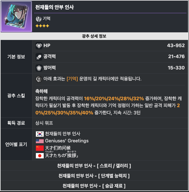 첫 기억 운명의 길 픽업 캐릭터.