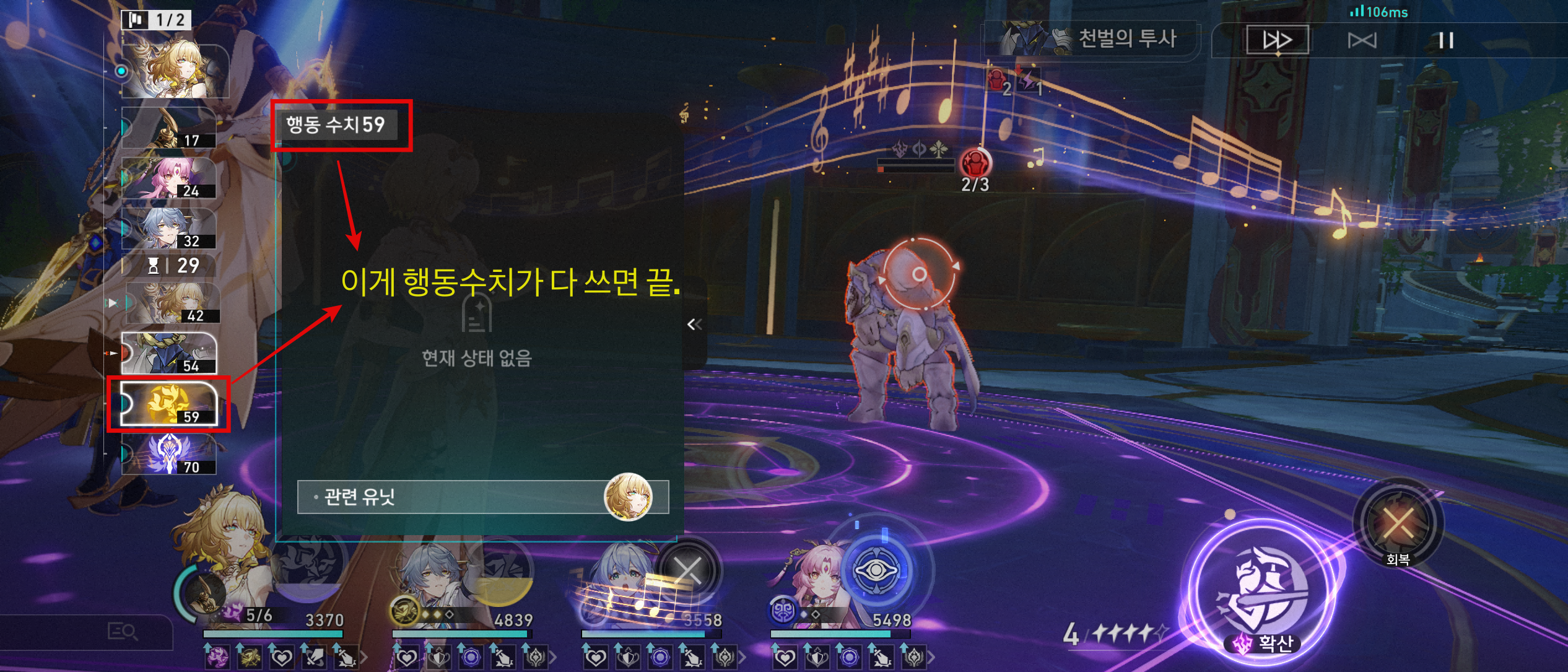 3. 특성 아군 에너지 회복이 6Pt 회복할 때마다