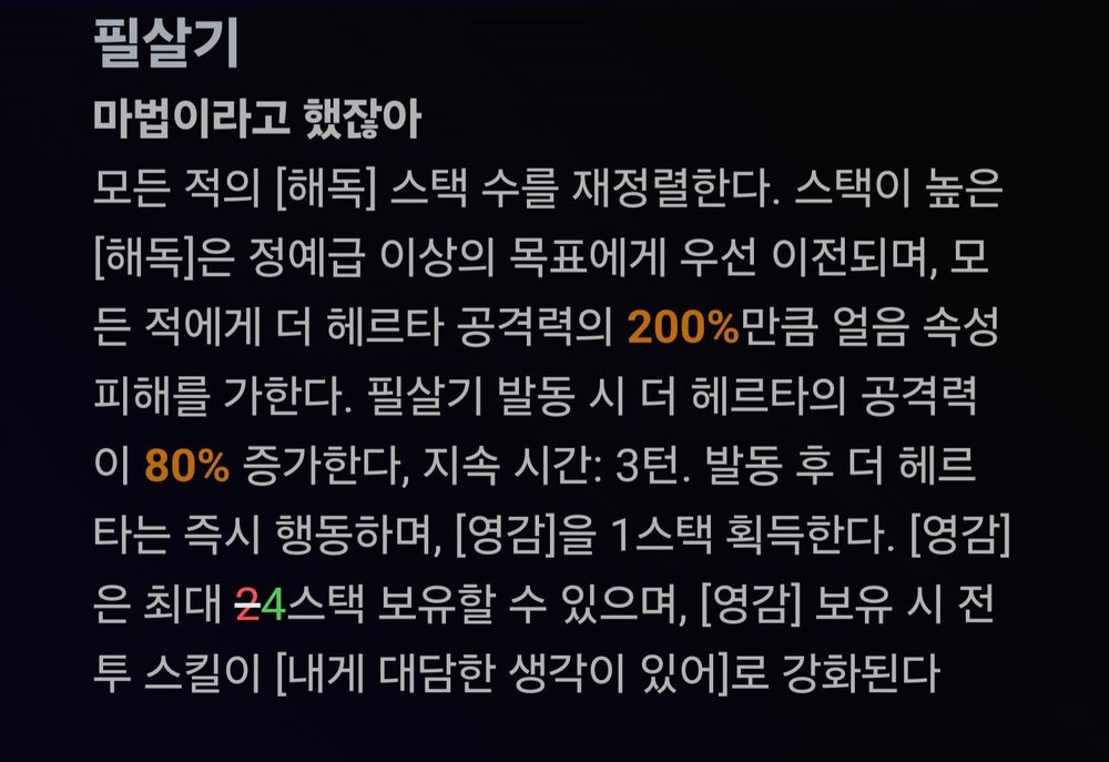 확정 피해 배율 1.5% 증가, 240Pt 당 24% 증가.