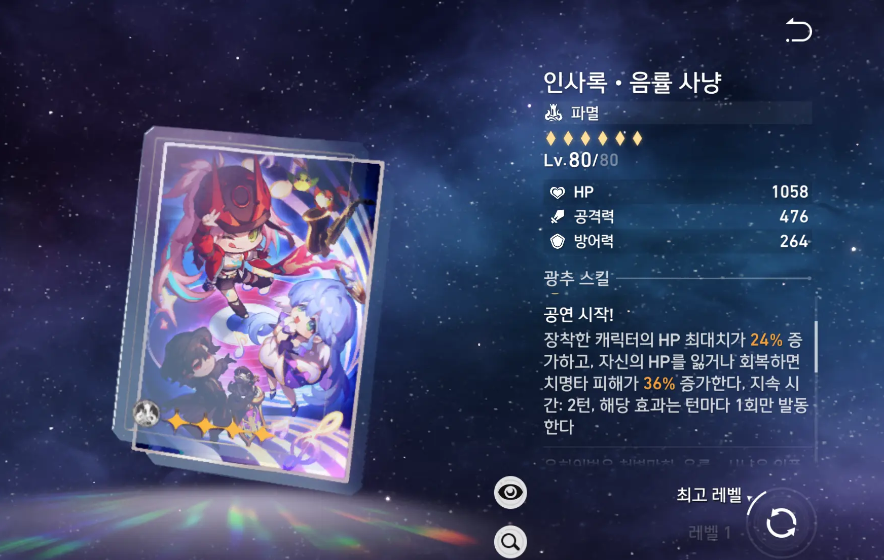 최대 체력이 높을수록 강한 캐릭터입니다.