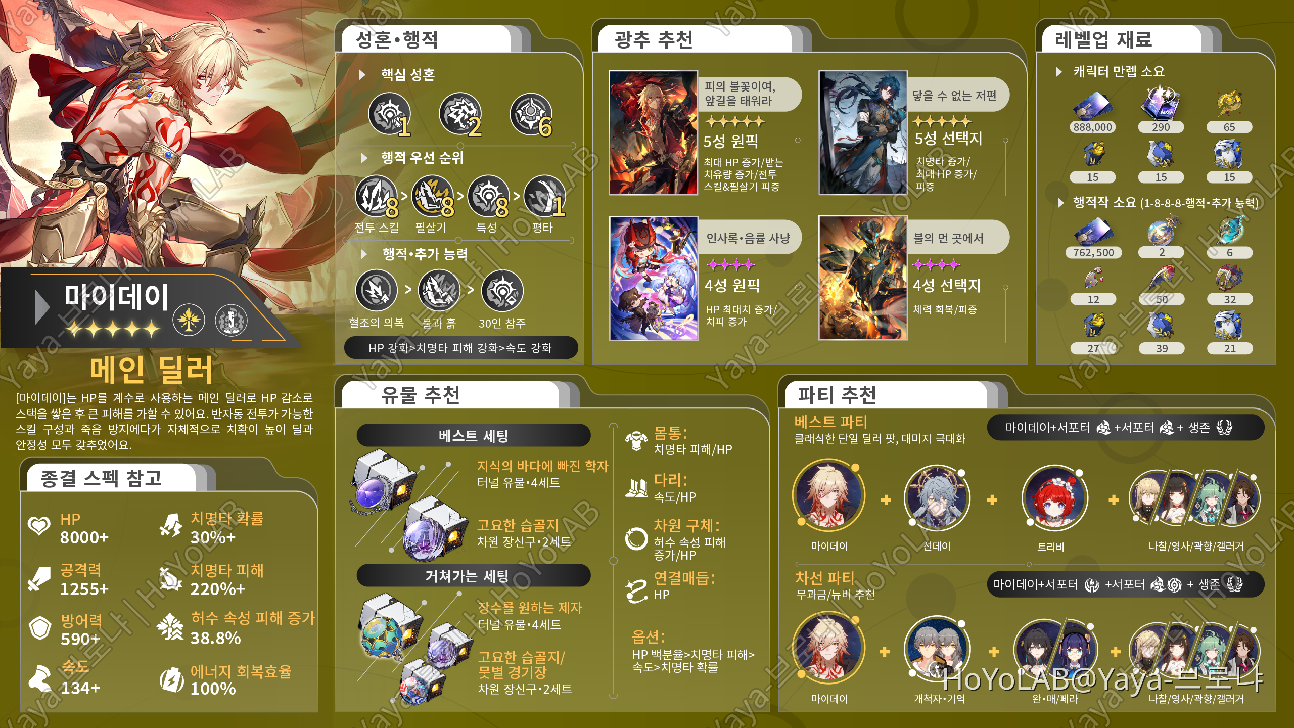붕괴 스타레일 3.2 버전 마이데이 성능 공략 광추 유물 파티 세팅 추천
