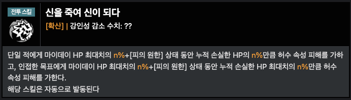 누적 손실한 HP 최대치의 60%만큼 허수 속성 피해를 가한다. -> 삭제