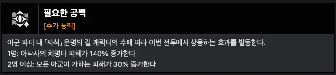 (지식 캐릭터 1명 : 아낙사 치피 상승, 2명 : 모든 아군 가하는 피해 40% 증가)