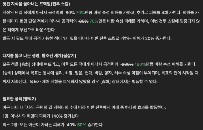 (지식 캐릭터 1명 : 아낙사 치피 상승, 2명 : 모든 아군 가하는 피해 40% 증가)