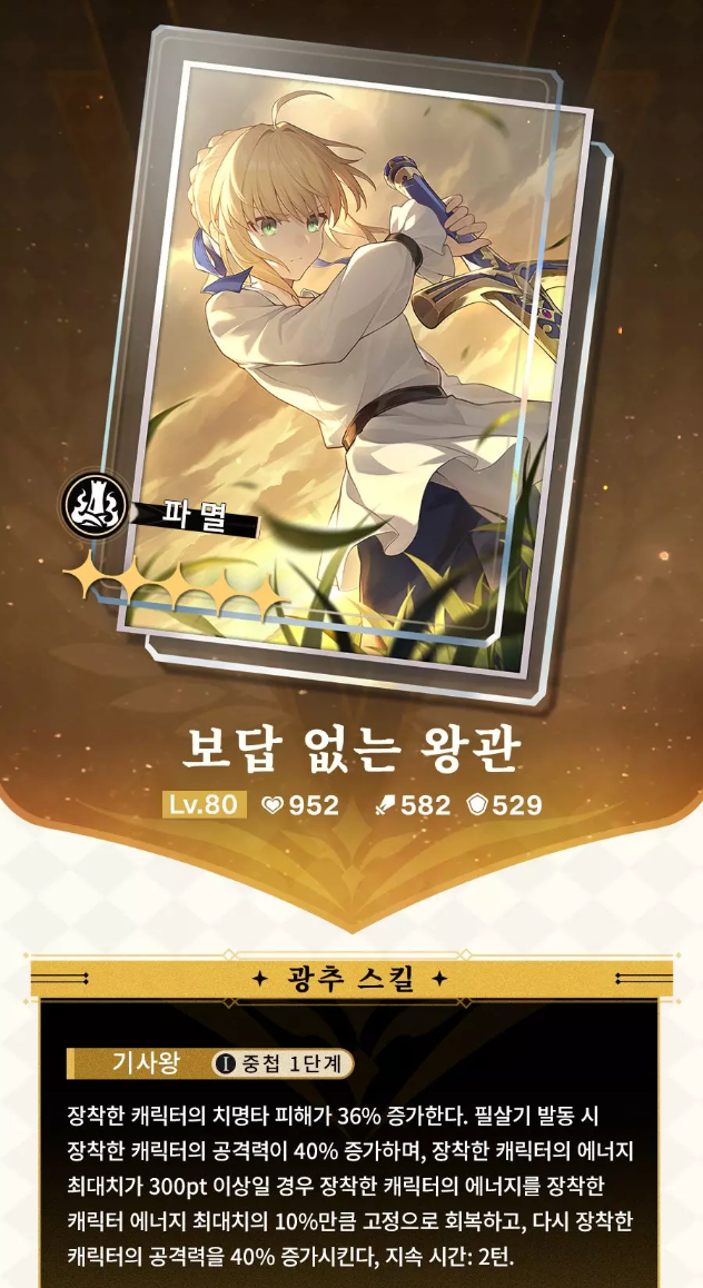 | 부 옵션 추천 | 1 순위 : 치명타 확률 - 100%까지만 맞춥시다. 2 순위 : 치명타 피해 3 순위 : 속도 - 135까지 4 순위 : 공% |
