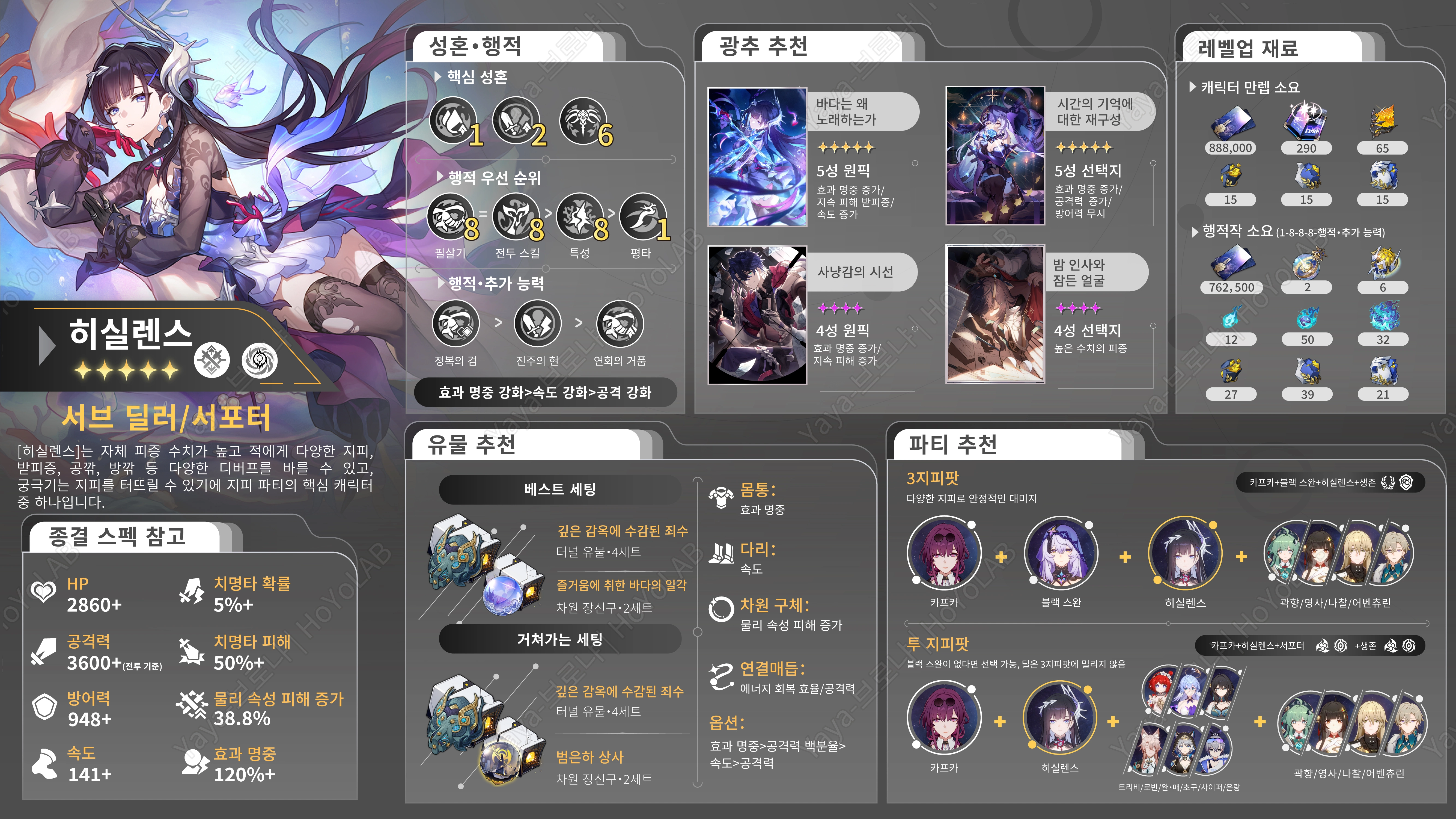 붕괴 스타레일 히실렌스 성능 광추 유물 돌파 파티 종합 가이드