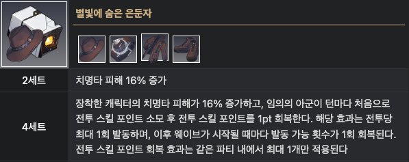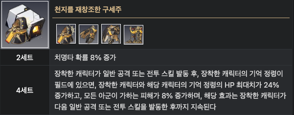 2 세트 치명타 피해 16% 증가 -> 제공하는 실드량 10% 증가.
