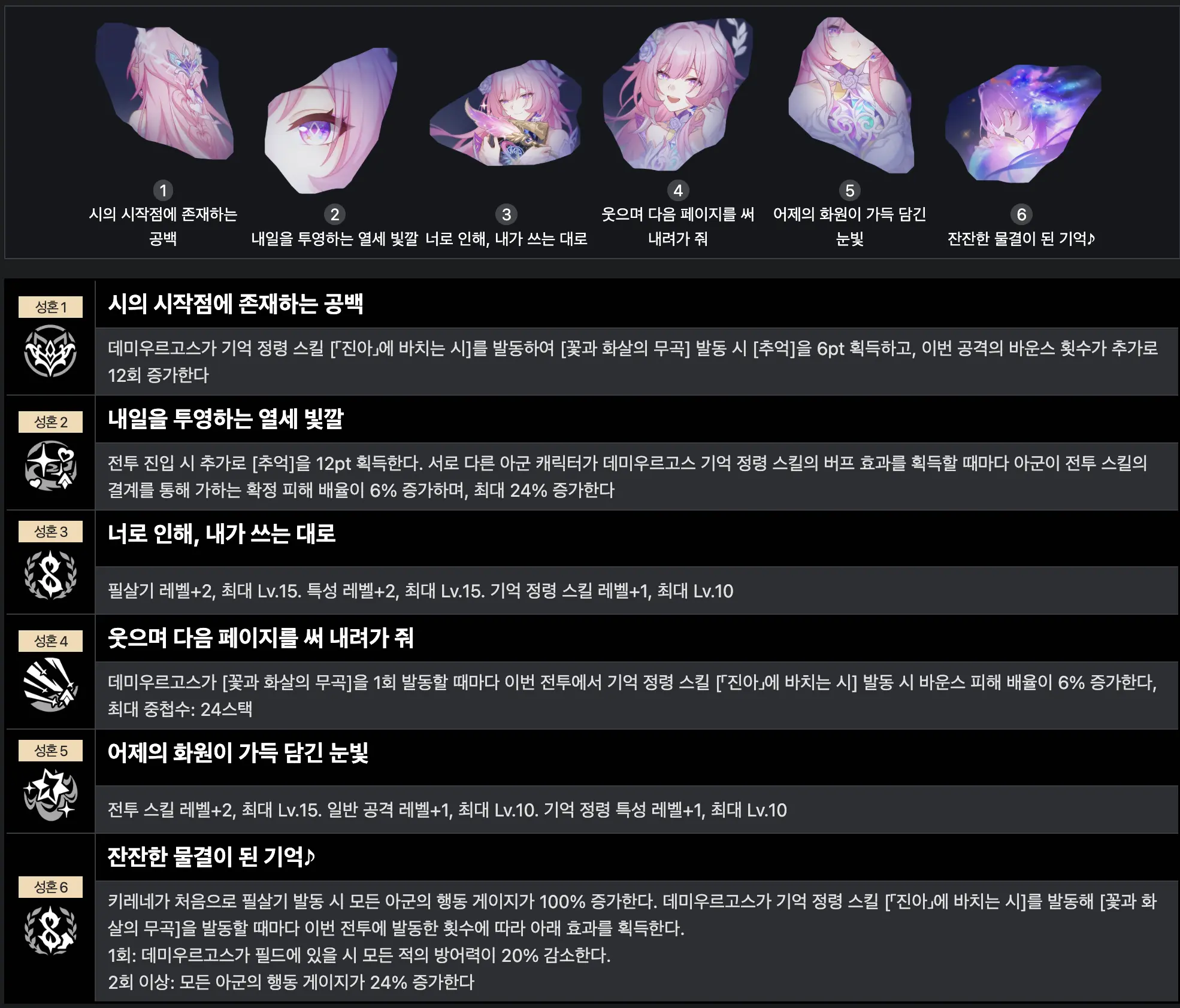 카스토리스 2 돌파 > 히아킨 1 돌파 > 에버나이트 1 돌파 > 키레네 2 돌파