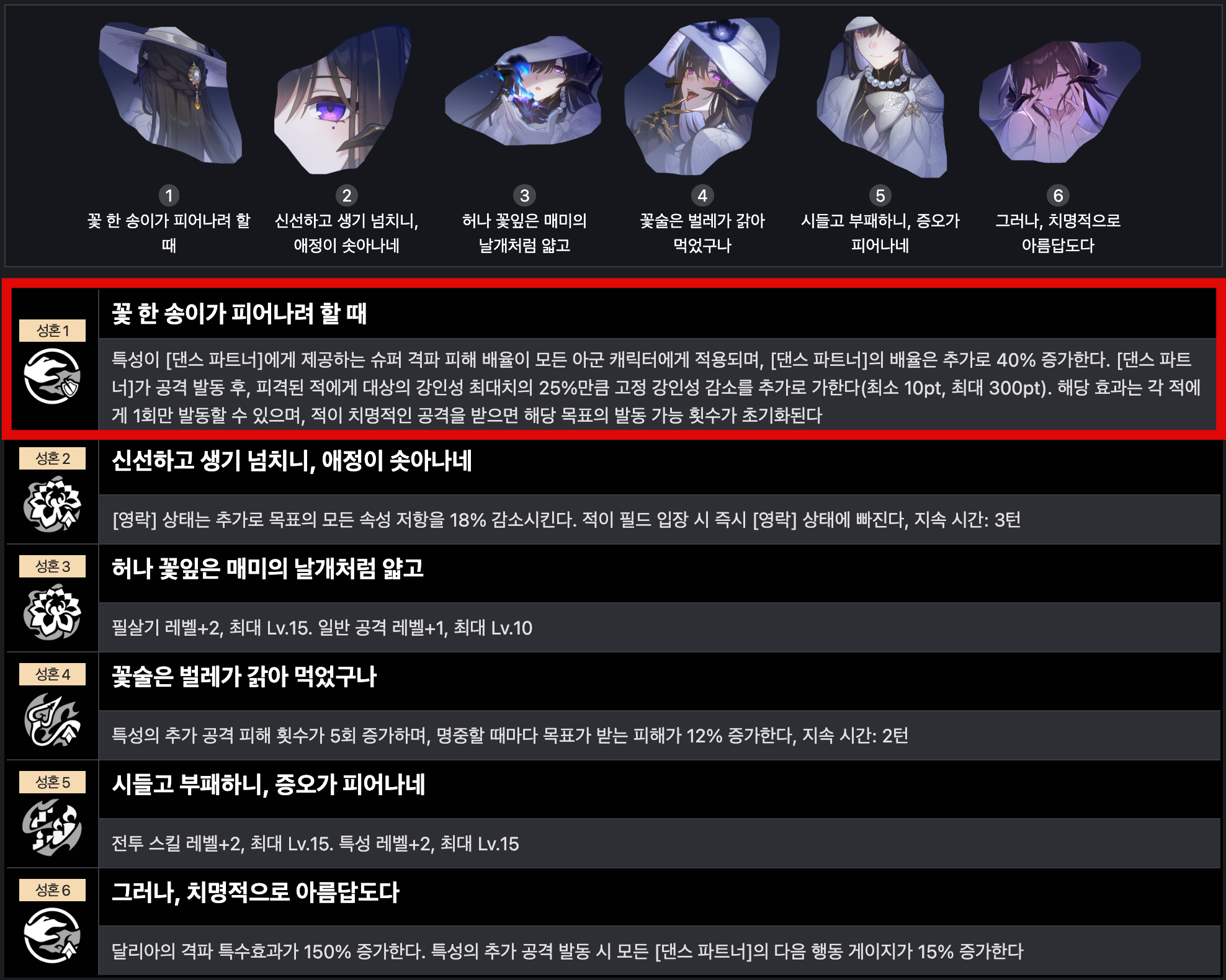 붕괴 스타레일 달리아 [성흔] 돌파 추천