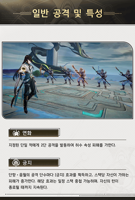 음월 일반 공격과 전투 스킬 그리고 특성