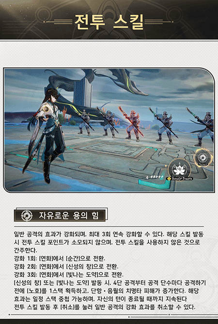 전투 스킬은 일반 공격을 강화하며 최대 3회까지 강화합니다.