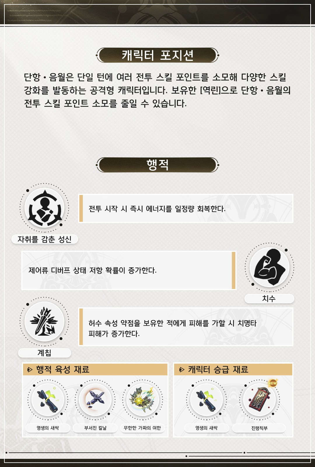 게임 내 포지션과 성장 재료