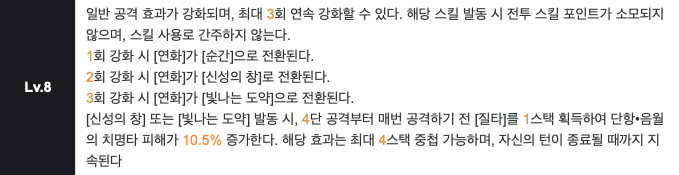 스택 당 가하는 피해 증가가 8 레벨 기준 8.7% 증가.