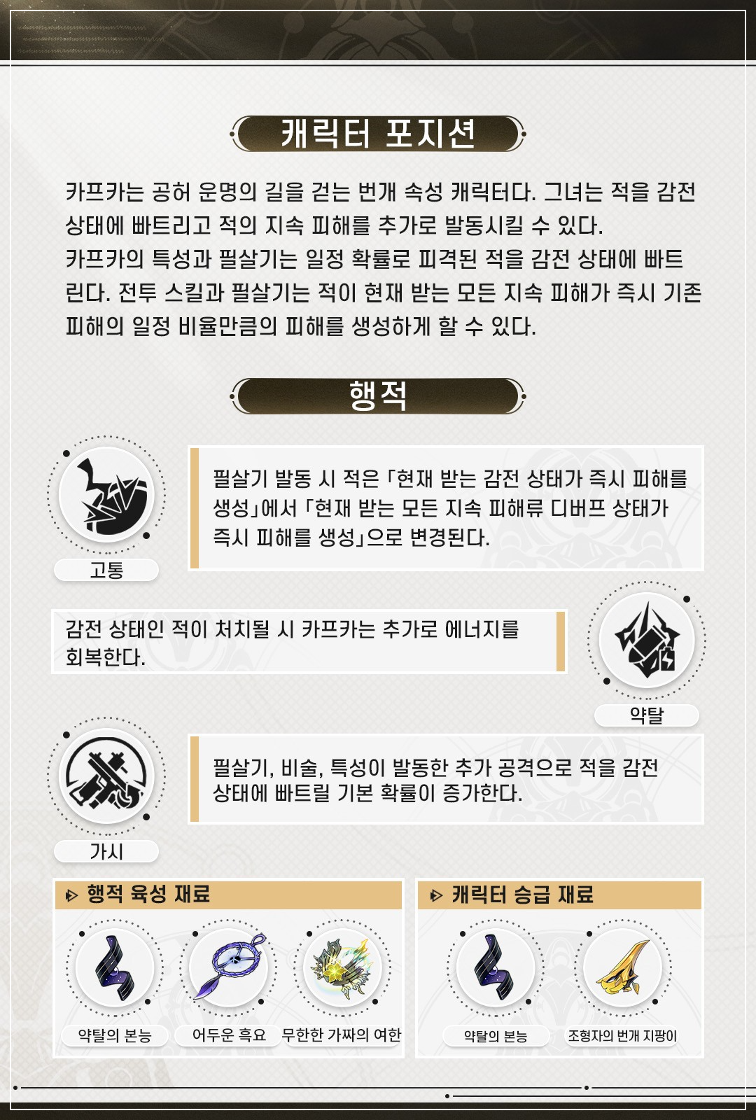카프카는 행적을 찍을수록 더욱 사기 캐릭터가 됩니다.