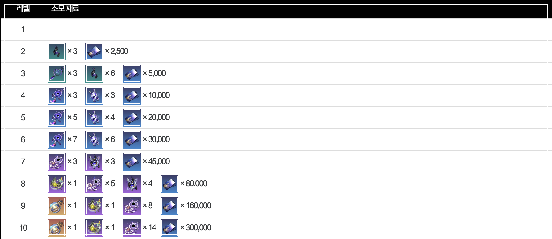 캐릭터 육성재료는 이번에 새로 나온 블레이드 행적 재료랑 같습니다.