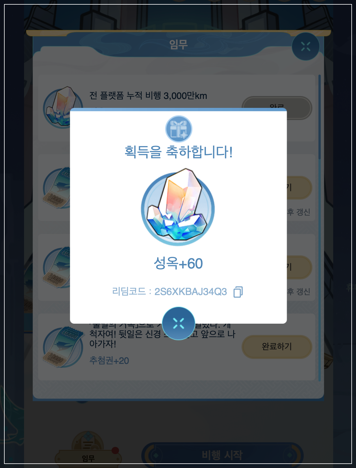 전 플랫폼 누적 비행 3000만Km 완료를 누르시면